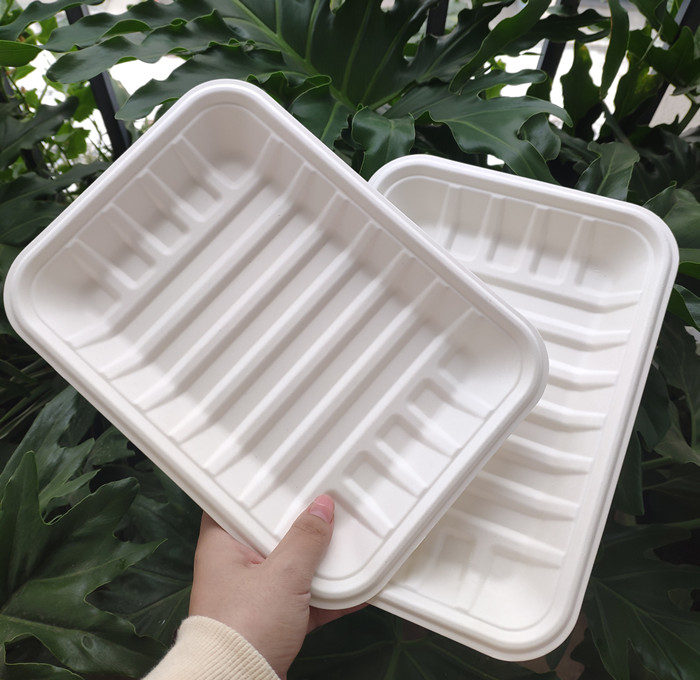 You can use the rectangle tray put meat and vegetables in market. With high quality, sugarcane food trays can be used in microwave and refrigerator without any leakage.